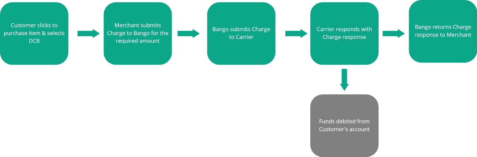 Bango supports both 1-step and 2-step models for charging the Consumer. The method employed will vary dependent on the payment provider.